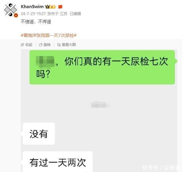 从照旧进行的巴黎奥运会拍浮赛场的情况来看,中国拍浮队并莫得达到赛前国内泳迷们对他们的生机值。毕竟,不论是张雨霏如故覃海洋,从当今来看齐还未达到全球的生机值。尤其是被委派厚望的覃海洋,更是在100米蛙泳决赛中,只得回第七的收获。对于中国拍浮队当今的收获欠安,有音讯称是中国拍浮队一天遭受到了东谈主均7次的振奋剂检测,导致中国拍浮队的备战节拍被打乱,从而影响到了状况。那么,这件事到底是果然假?有拍浮博主在网上发文,示意我方求证后有了的确的谜底。咱们统共去望望。
