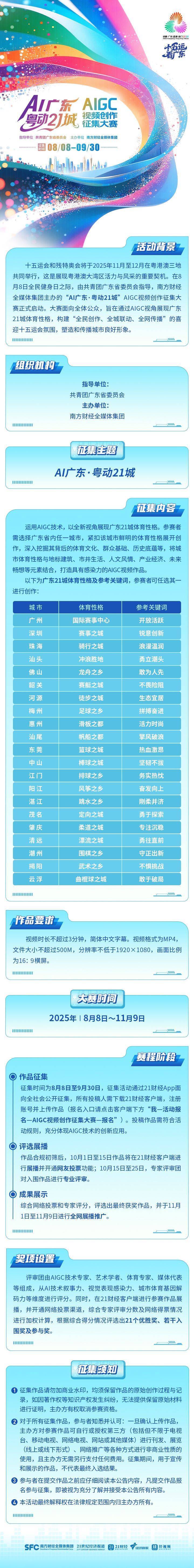 今天(2025年8月8日)是全民健身日,“AI广东·粤动21城”AIGC视频创作搜集大赛致密驱动。