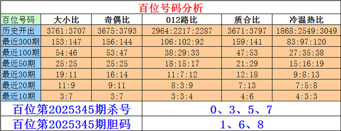 摆设三百位第2025345期杀号:0、3、5、7